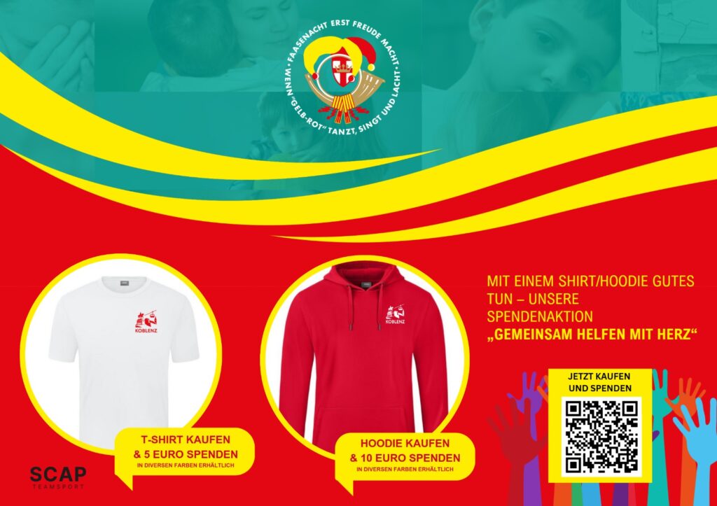 Wir, die Narrenzunft Gelb-Rot e.V. Koblenz, möchten nicht nur in der fünften Jahreszeit Freude verbreiten, sondern auch etwas zurückgeben. Darum starten wir unsere Spendenaktion „Gemeinsam helfen mit Herz“ zugunsten der regionalen Hilfsorganisation HELFT UNS LEBEN e.V. Ab sofort findest du in unserem Teamshop eine exklusive Auswahl an speziell für diese Aktion entworfenen Produkten – perfekt zum Tragen, Verschenken oder einfach, um etwas Gutes zu tun.